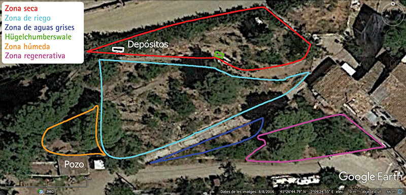 Sobre todo las dos últimas son zonas marginales del bosque comestible que no habían sido introducidas en el diseño inicial, ni tampoco en el nuevo diseño de 2014. La zona húmeda fue la parte más importante en el diseño del 2015. La zona regenerativa no se había introducido en ningún diseño anterior.